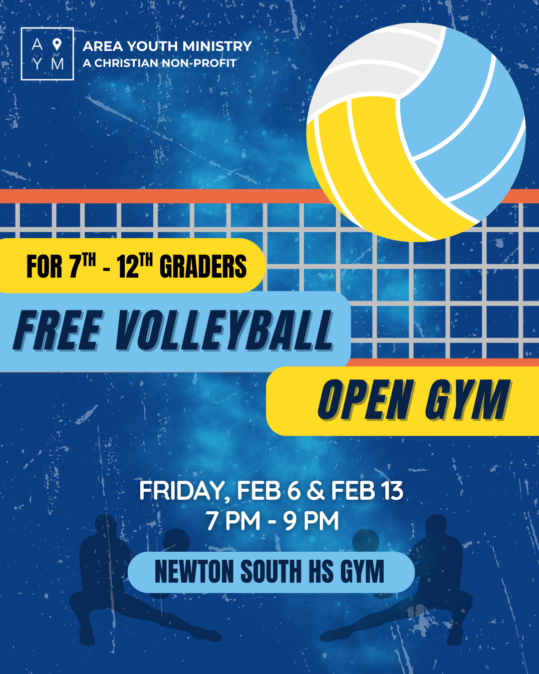 Come to our spring volleyball tournament! For 8th-12th grade students only, with free pizza!
